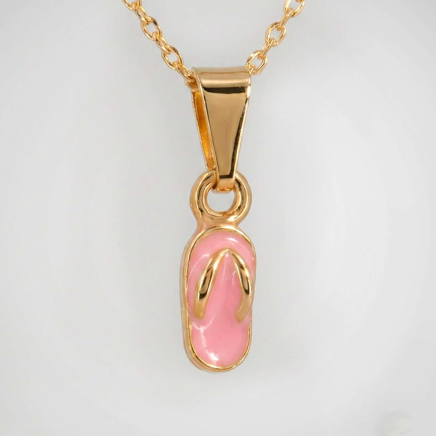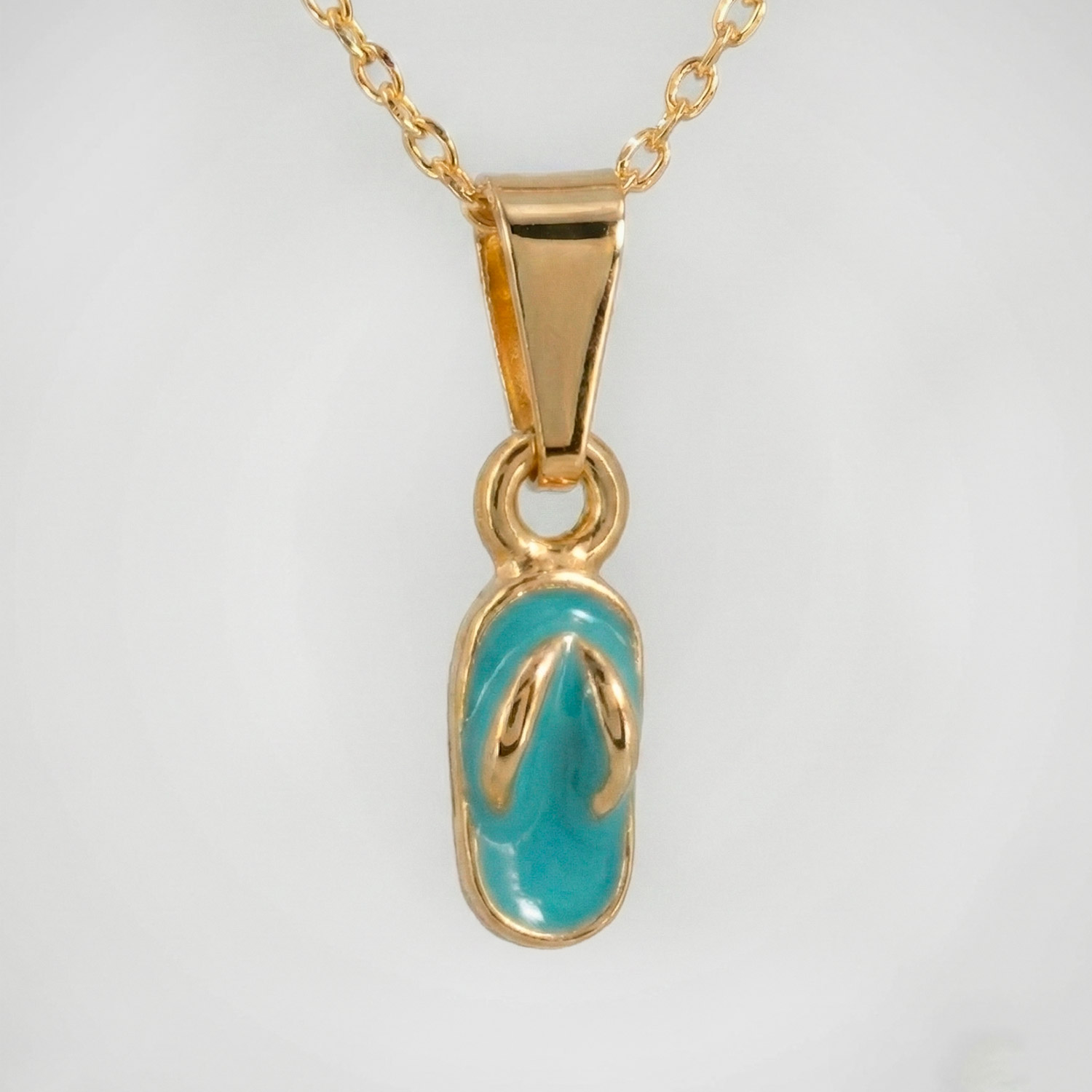Dije de sandalia en oro 18k con coloridos detalles en resina. Un diseño veraniego y alegre, perfecto para un toque tropical y divertido.