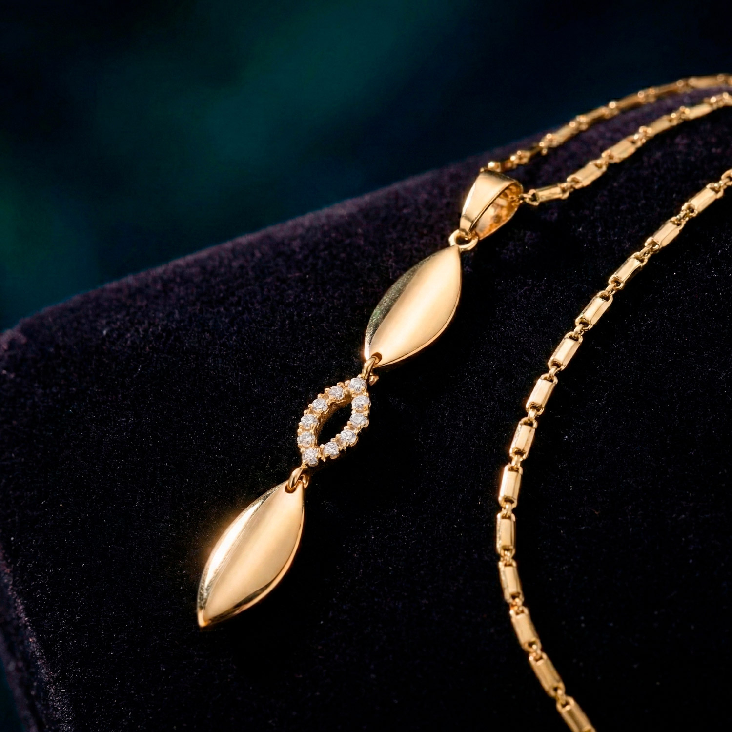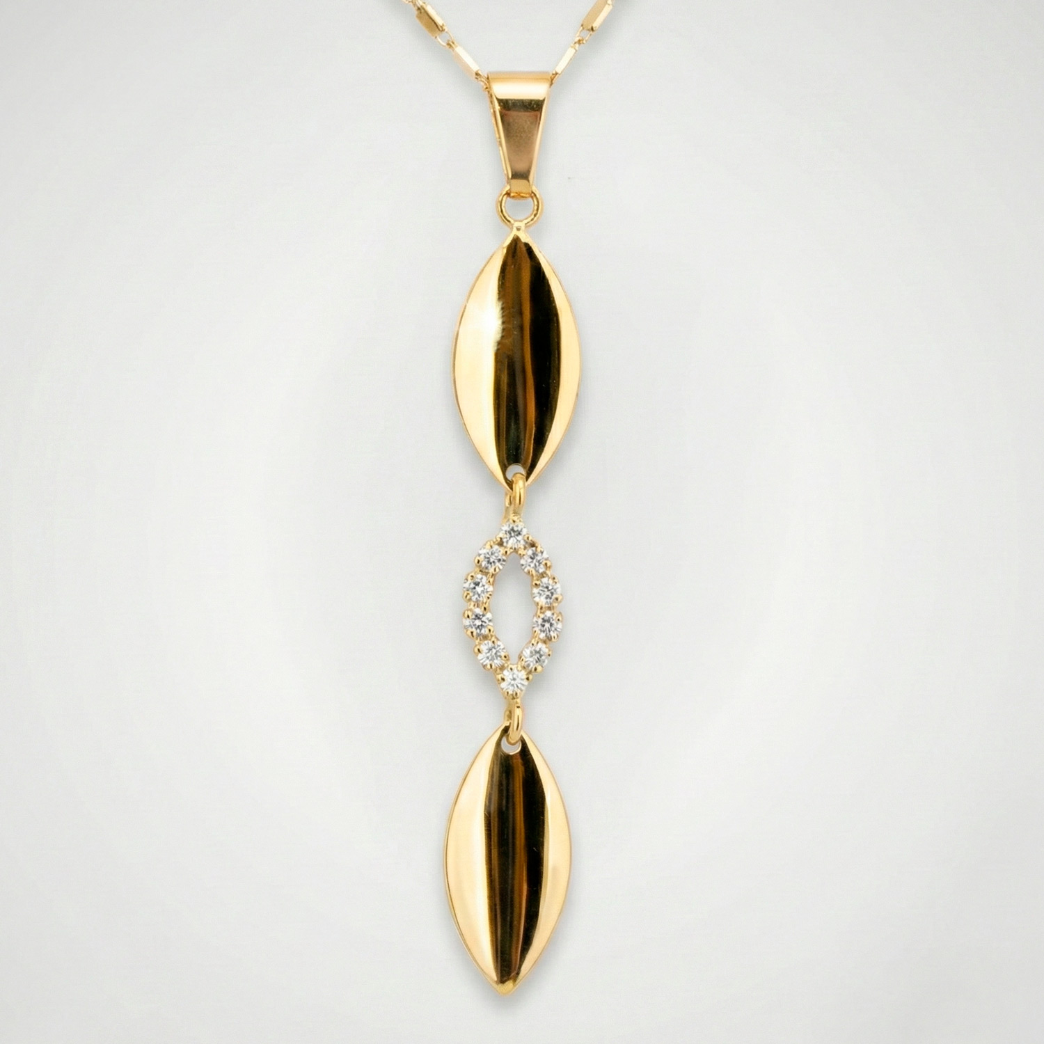 Dije en oro 18k con pavé de cristales strass. Un diseño deslumbrante y glamuroso, ideal para iluminar tu escote con un brillo espectacular.