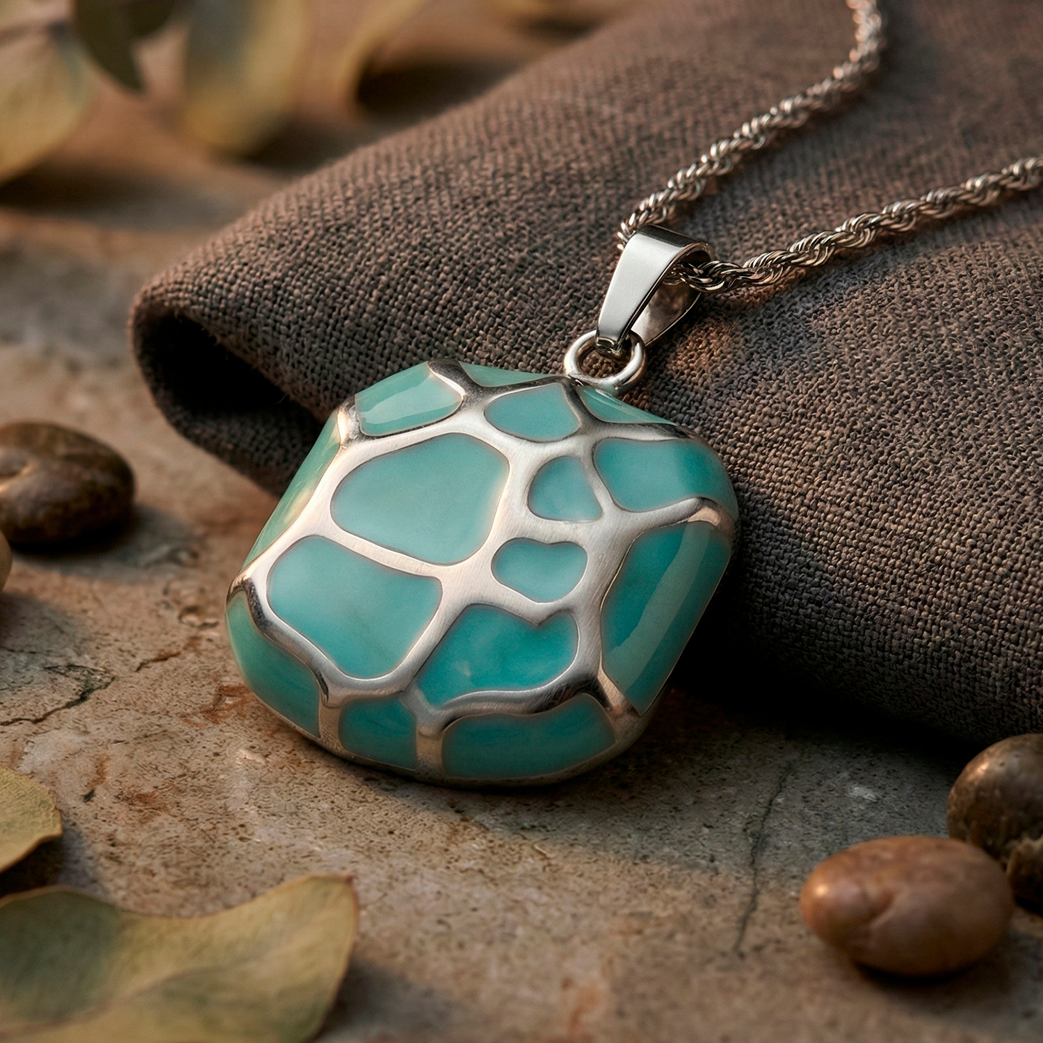 Dije en acero inoxidable con incrustación de resina decorativa. Diseño moderno y resistente que aporta un estilo único y contemporáneo.