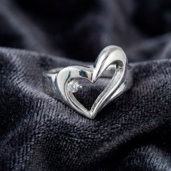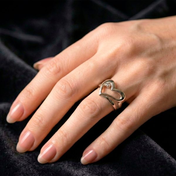 Anillo bañado en plata 925 con diseño escultural de corazón abierto y un circón. Una pieza moderna y romántica que aporta brillo y distinción sutil a tu mano.