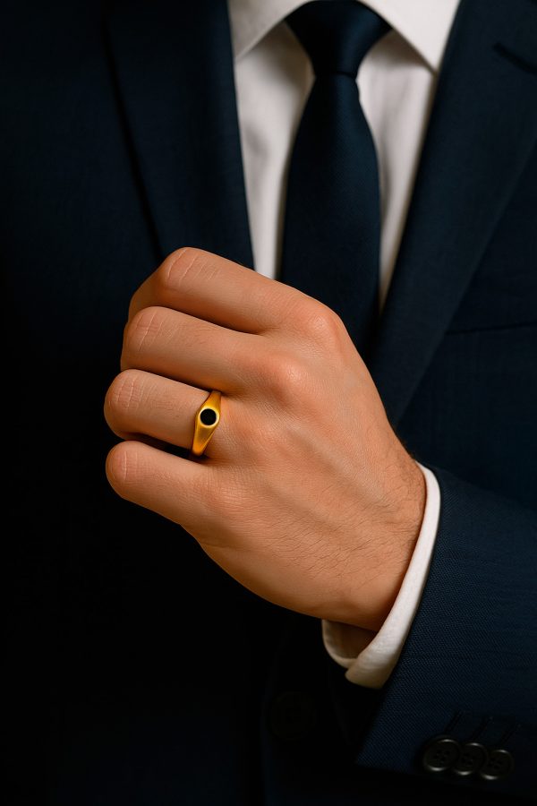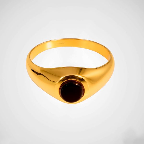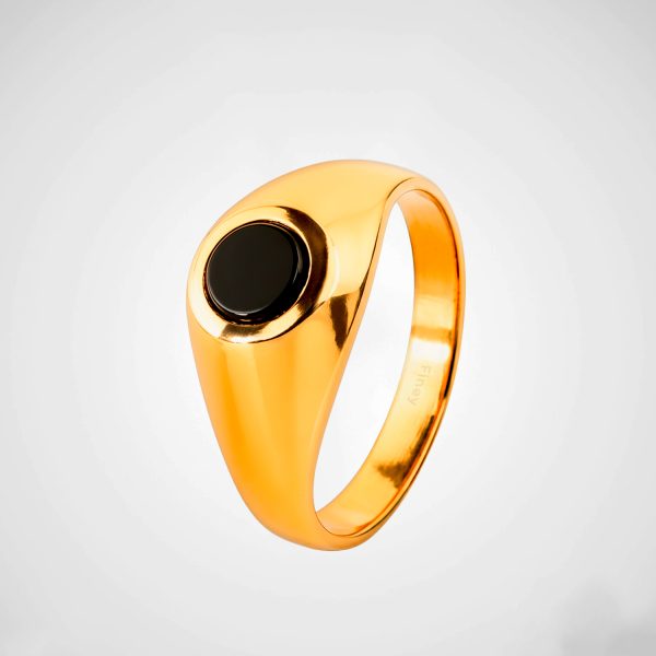 Anillo tipo sello enchapado en oro con piedra negra. Sofisticación minimalista con carácter atemporal.