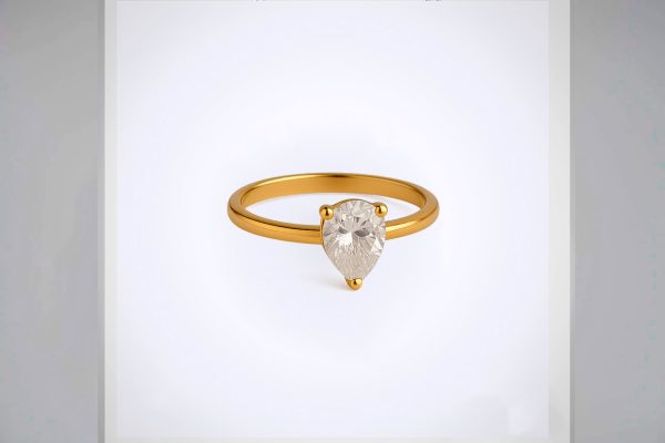 Anillo dorado enchapado en oro de 18k con piedra en corte lágrima. Una joya minimalista y elegante que resalta con sutileza y clase.
