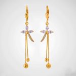 Aretes colgantes bañados en oro de 18k con diseño estelar y cadenas doradas. Brilla con elegancia celestial en cada ocasión.