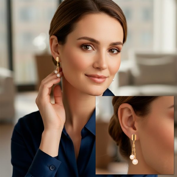 Cada elemento ha sido ensamblado con atención al detalle y acabado en baño de oro de 18K, logrando una pieza con presencia escultural y un toque vintage moderno. Su cierre de poste asegura una fijación cómoda y segura, ideal para eventos especiales, galas o para mujeres que desean proyectar poder con un estilo sofisticado.