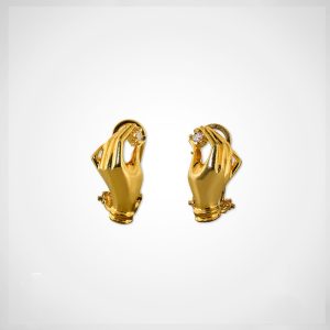 Cada elemento ha sido ensamblado con atención al detalle y acabado en baño de oro de 18K, logrando una pieza con presencia escultural y un toque vintage moderno. Su cierre de poste asegura una fijación cómoda y segura, ideal para eventos especiales, galas o para mujeres que desean proyectar poder con un estilo sofisticado.