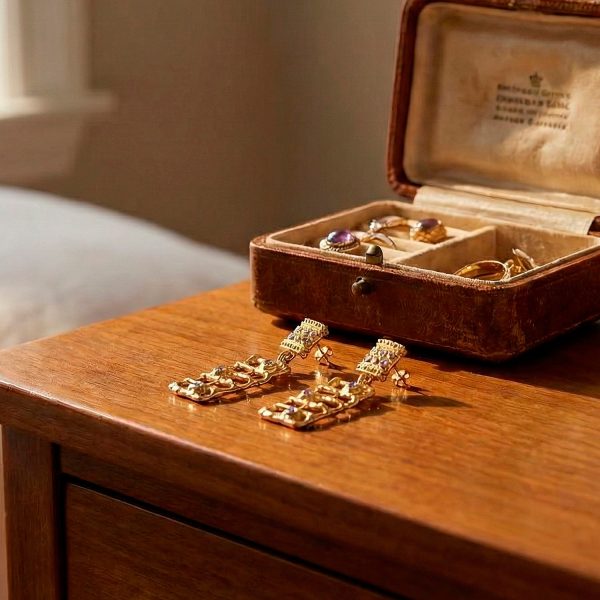 Cada elemento ha sido ensamblado con atención al detalle y acabado en baño de oro de 18K, logrando una pieza con presencia escultural y un toque vintage moderno. Su cierre de poste asegura una fijación cómoda y segura, ideal para eventos especiales, galas o para mujeres que desean proyectar poder con un estilo sofisticado.