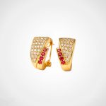 De la sofisticada colección Glamour Dusk, estos aretes enchapados en oro de 18k están diseñados para deslumbrar. Su forma curvada abraza una delicada línea de circonias rojas, complementadas con cristales blancos que aportan un brillo sutil y refinado. Perfectos para eventos nocturnos o para elevar cualquier atuendo con un toque glamuroso y moderno.
