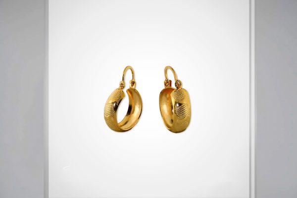 Aretes tipo argolla enchapados en oro de 18k con textura grabada. Estilo clásico que resalta en cualquier ocasión.