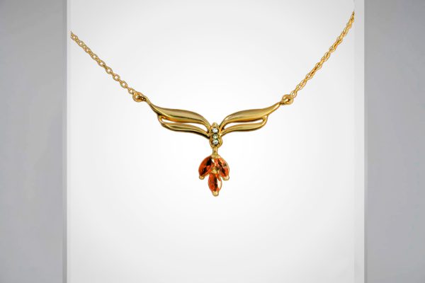 Collar enchapado en oro de 18k con diseño floral y cristales amarillos. Un accesorio elegante y delicado que transmite luz y armonía.