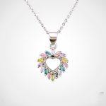 El collar Celestial Drop pertenece a la colección Mystic Garden, una línea inspirada en los símbolos de la naturaleza, la fantasía y la magia de los colores. Este diseño presenta un colgante en forma de gota calada, decorado con cristales multicolor en tonos rosa, azul, verde y violeta que evocan la luz y la diversidad de un jardín encantado. Su estructura está elaborada en acero hipoalergénico enchapado en plata 925, lo que garantiza durabilidad y un acabado brillante. Ideal para quienes desean destacar con un accesorio sofisticado, femenino y lleno de personalidad.