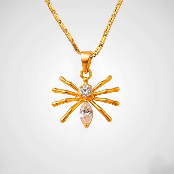 Dije en forma de araña bañado en oro de 18k con cristales engastados. Un diseño audaz y sofisticado para quienes desean destacar con originalidad.