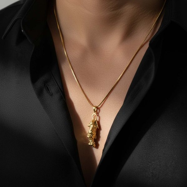 Perfecto para quienes buscan joyería que rompa con lo convencional y cuente una historia propia. Ya sea combinado con un look urbano o un outfit sofisticado de noche, este dije añade un toque de audaz glamour a cualquier estilo.