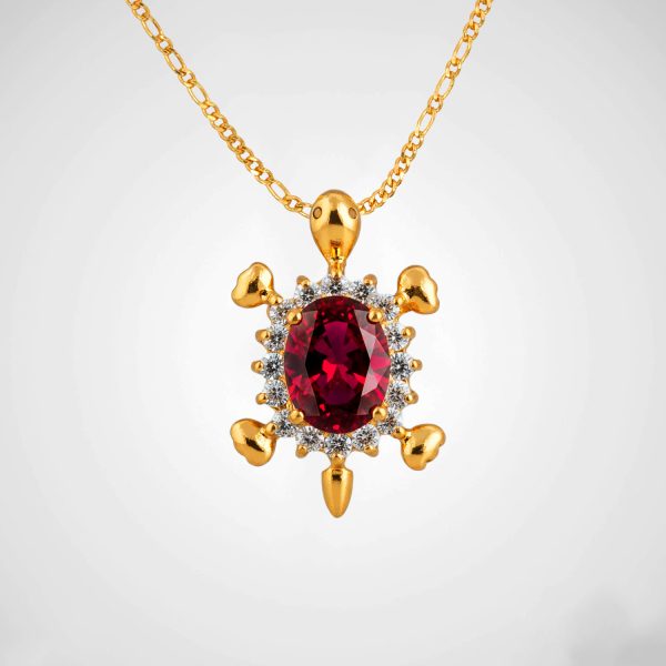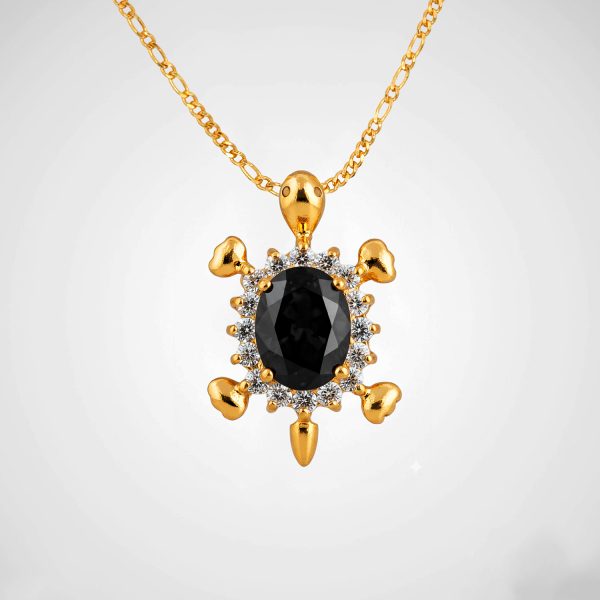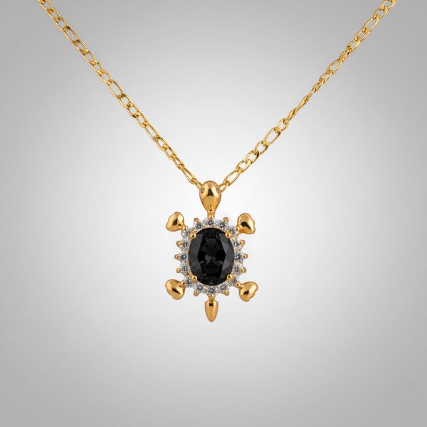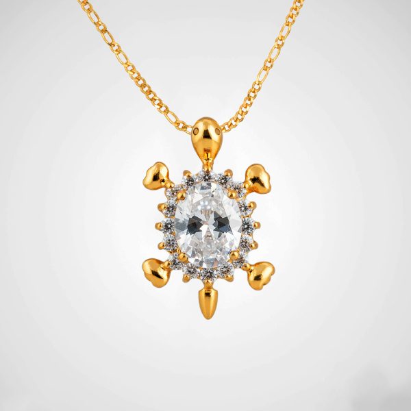 Dije de tortuga enchapado en oro de 18k con zircon central. Un símbolo de protección y elegancia eterna.