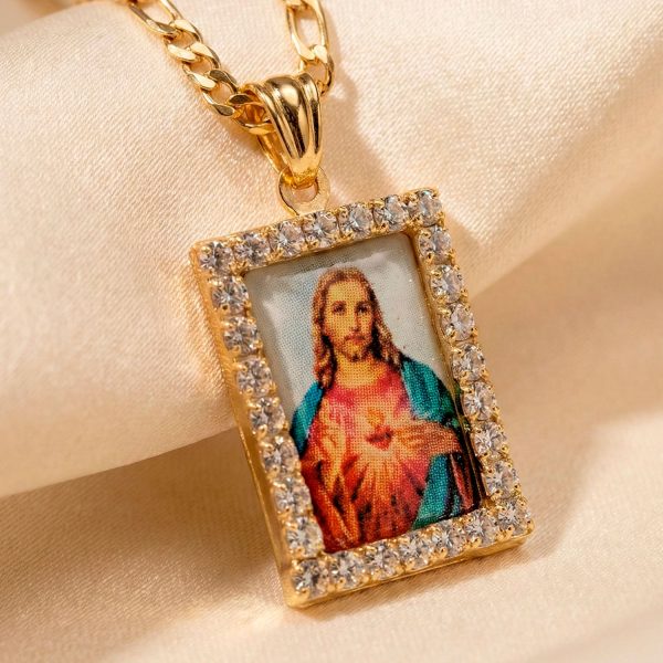 “Hermosa cadena con medalla de la Virgen y marco de strass. Un diseño religioso elegante y brillante, perfecto para uso diario u ocasiones especiales.”