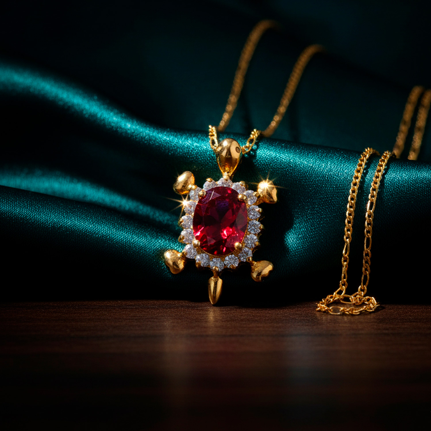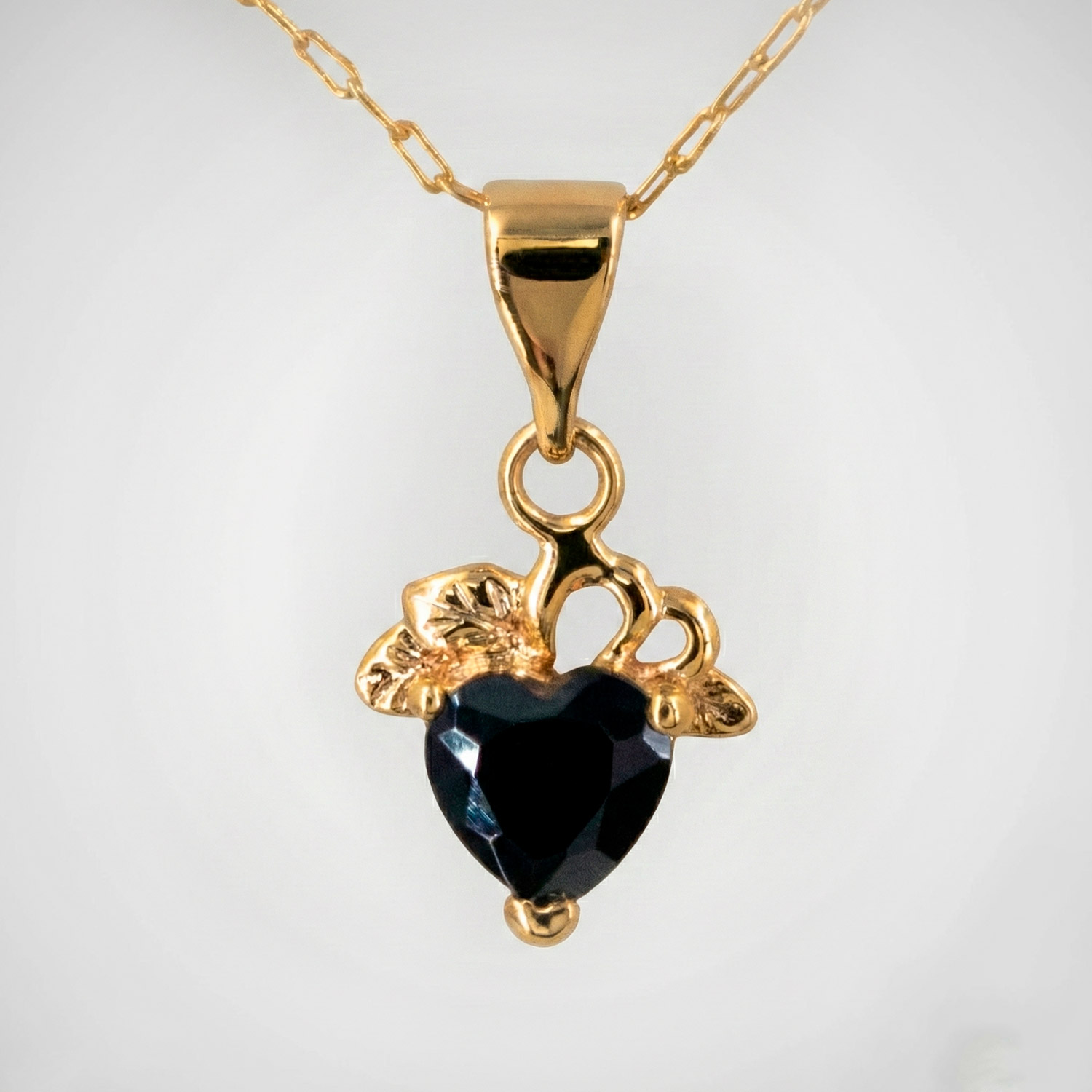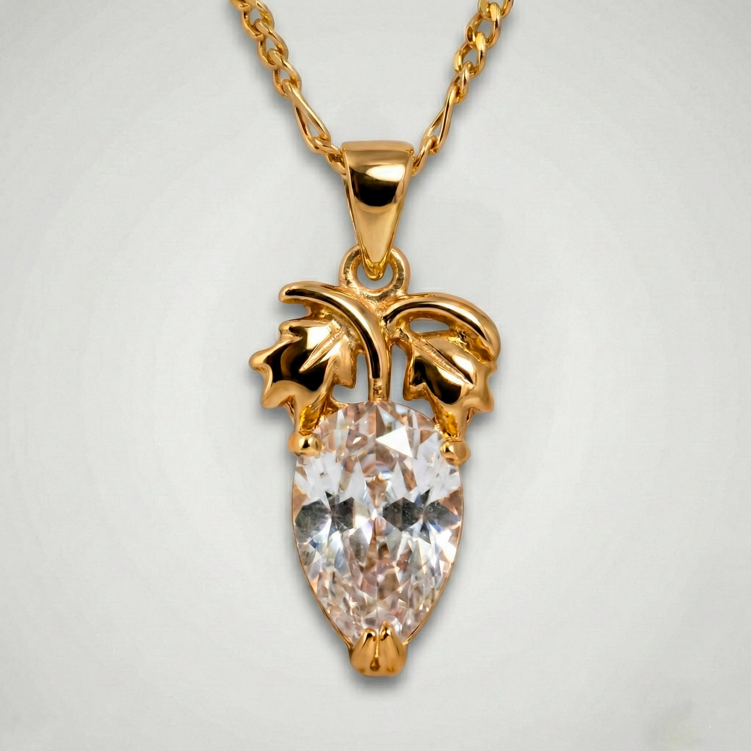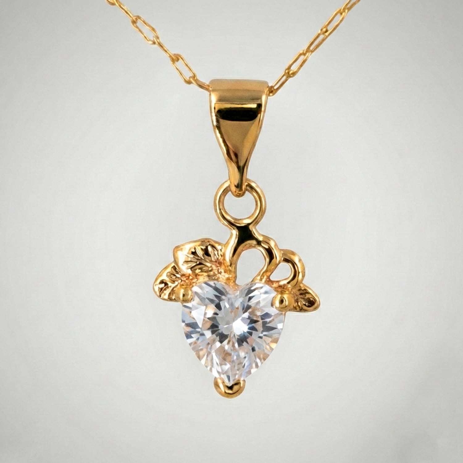 Dije enchapado en oro con circón en forma de corazón y detalles de hojas. Un diseño romántico y muy femenino.