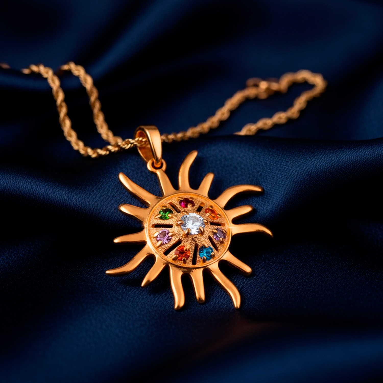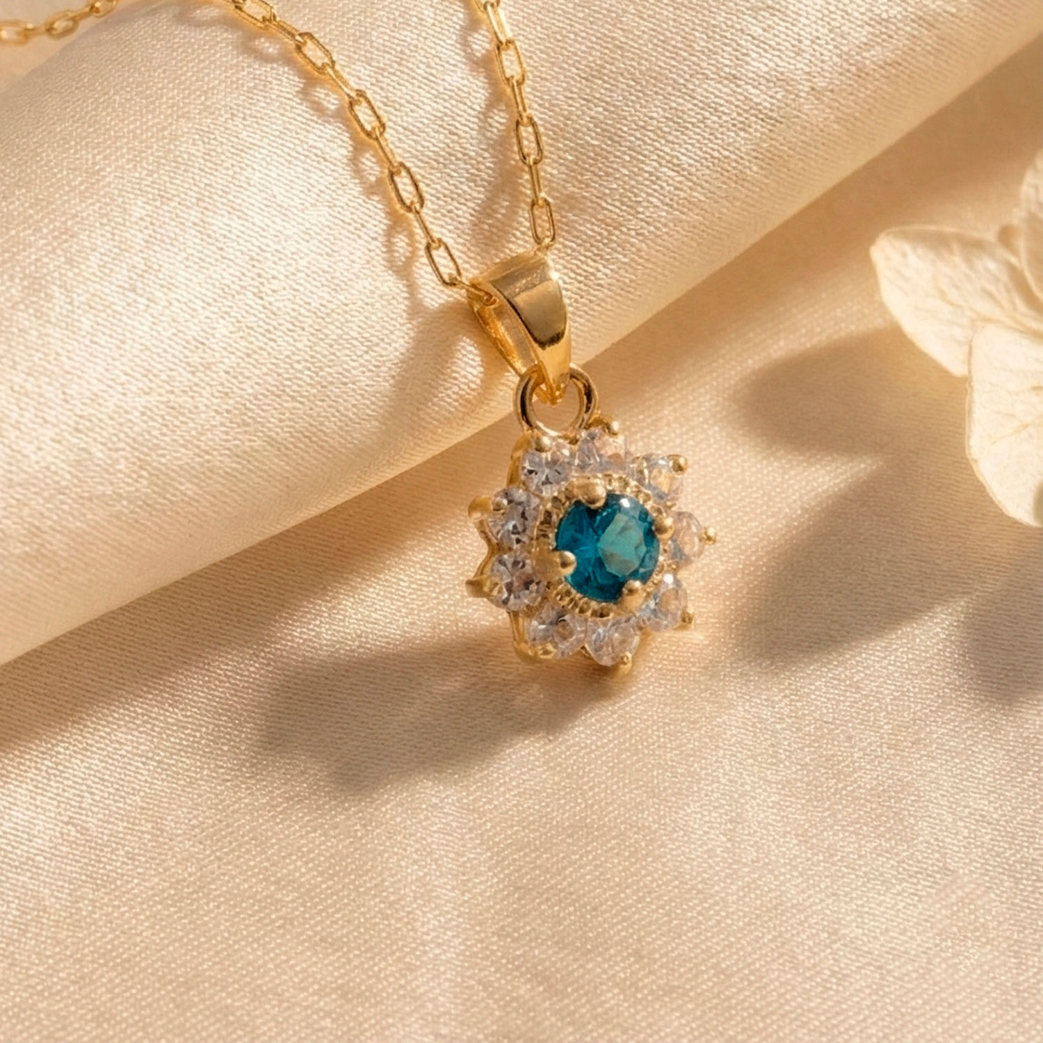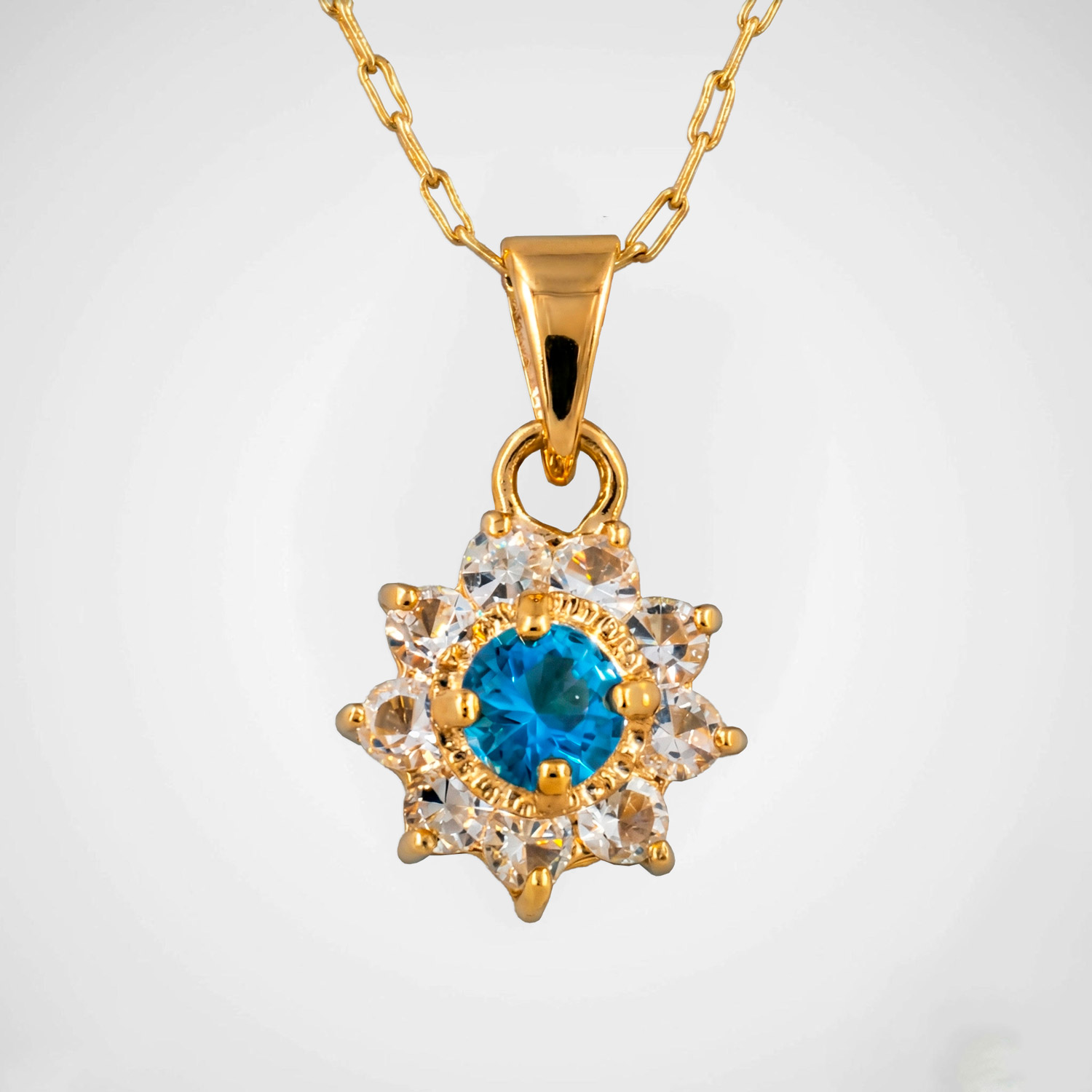 Dijes florales enchapados en oro con cristal central de color y orla de brillos. Un diseño femenino y radiante para realzar tu belleza.