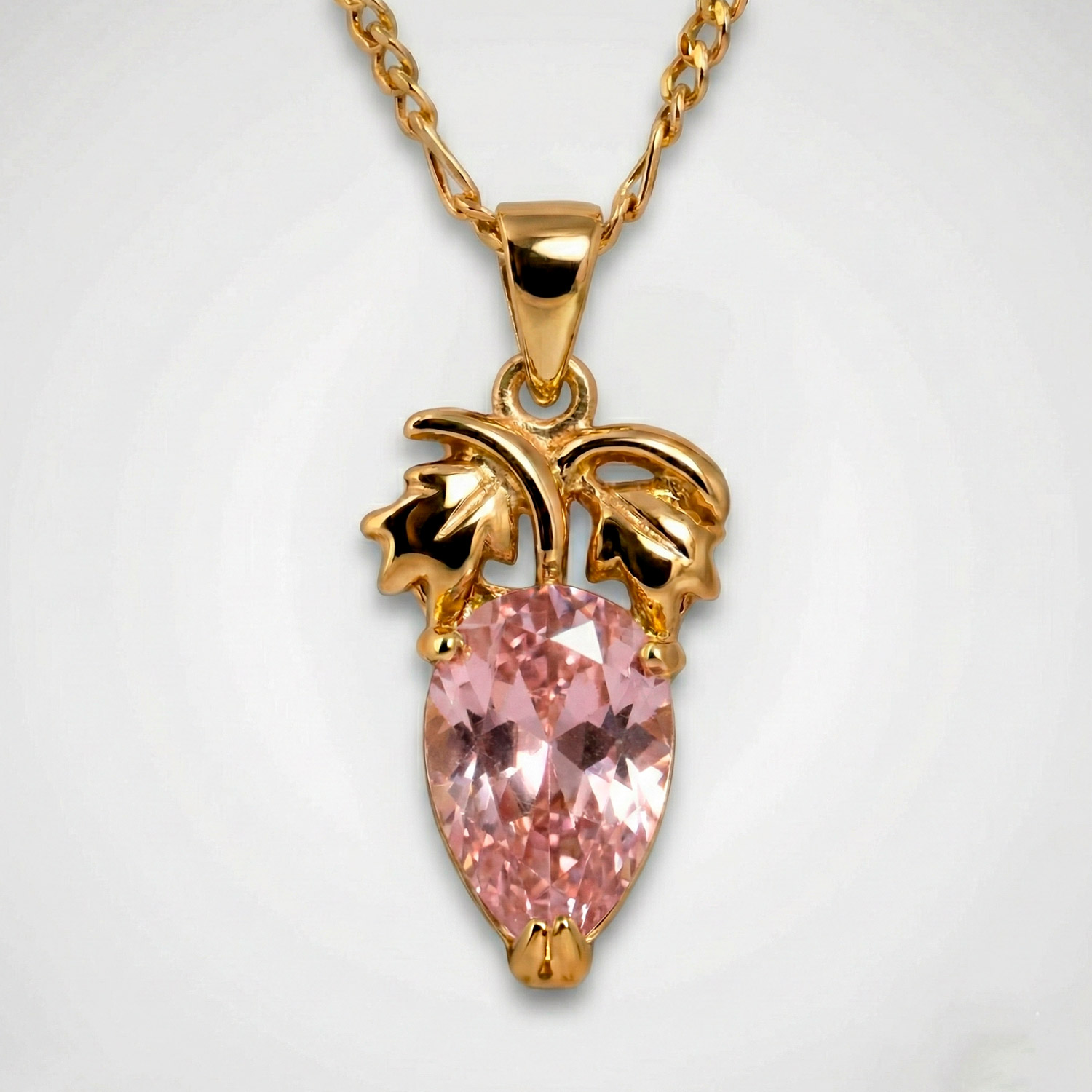Dije con forma de fruta enchapado en oro y circón (rosa o blanco). Un diseño dulce y brillante, ideal para un estilo fresco y chic.