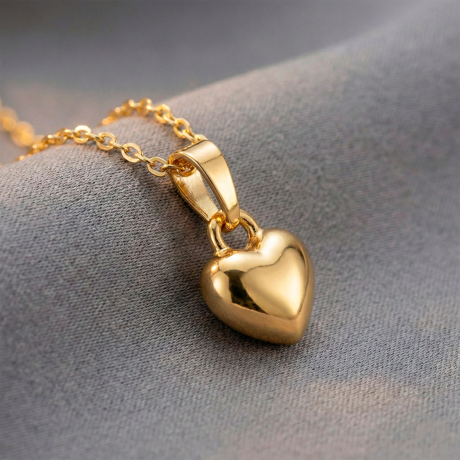 Pequeño dije de corazón con acabado liso y brillante. Un básico minimalista y sutil, perfecto para uso diario o layering.
